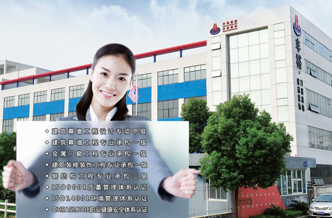 公司現具備建筑幕墻工程設計專項甲級資質、建筑幕墻工程專業承包一級、建筑裝修裝飾工程專業承包一級、鋼結構工程專業承包三級、建筑門窗行業資格產品制造一級、建筑門窗行業資格產品安裝一級、江蘇省標準化窗推廣證企業。